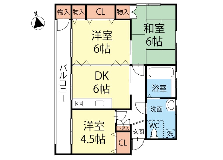| 間取 | 3DK | 間取詳細 | DK6、洋6、洋6、洋4.5 |